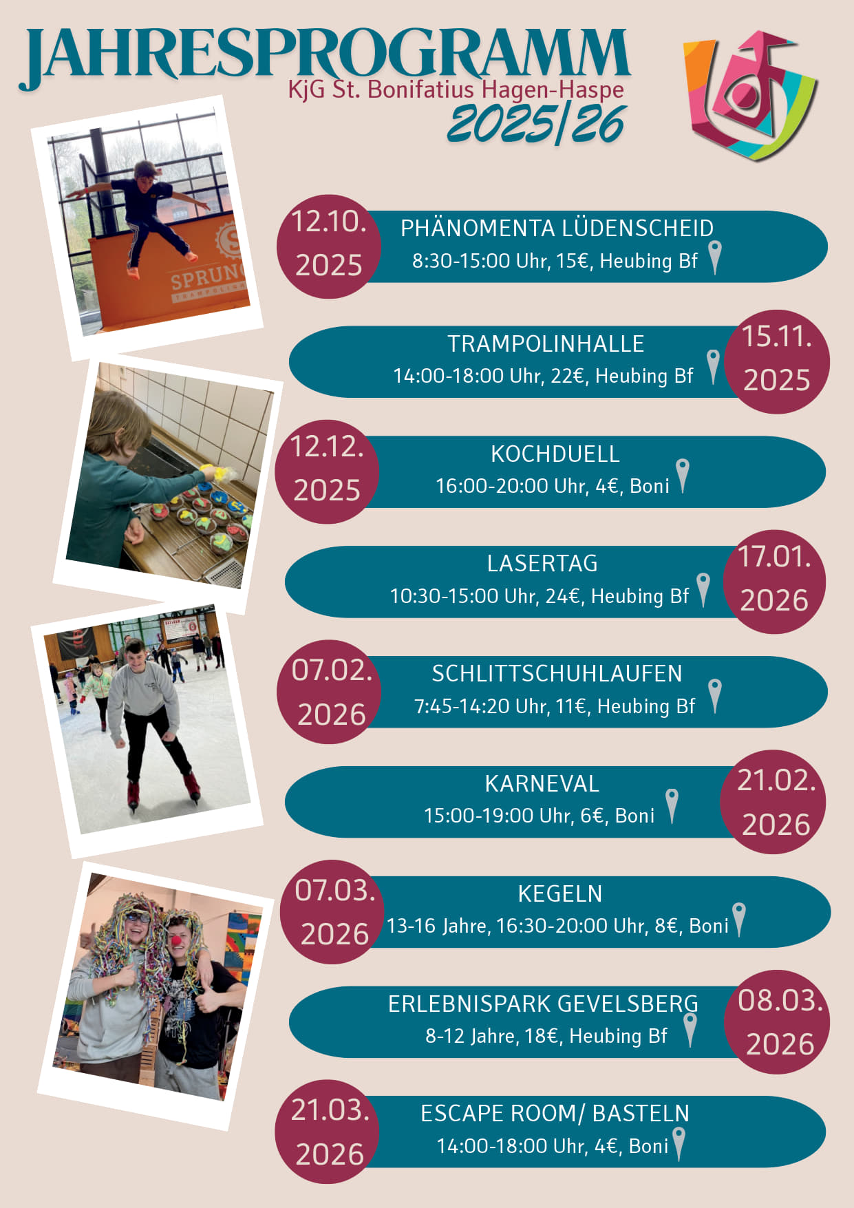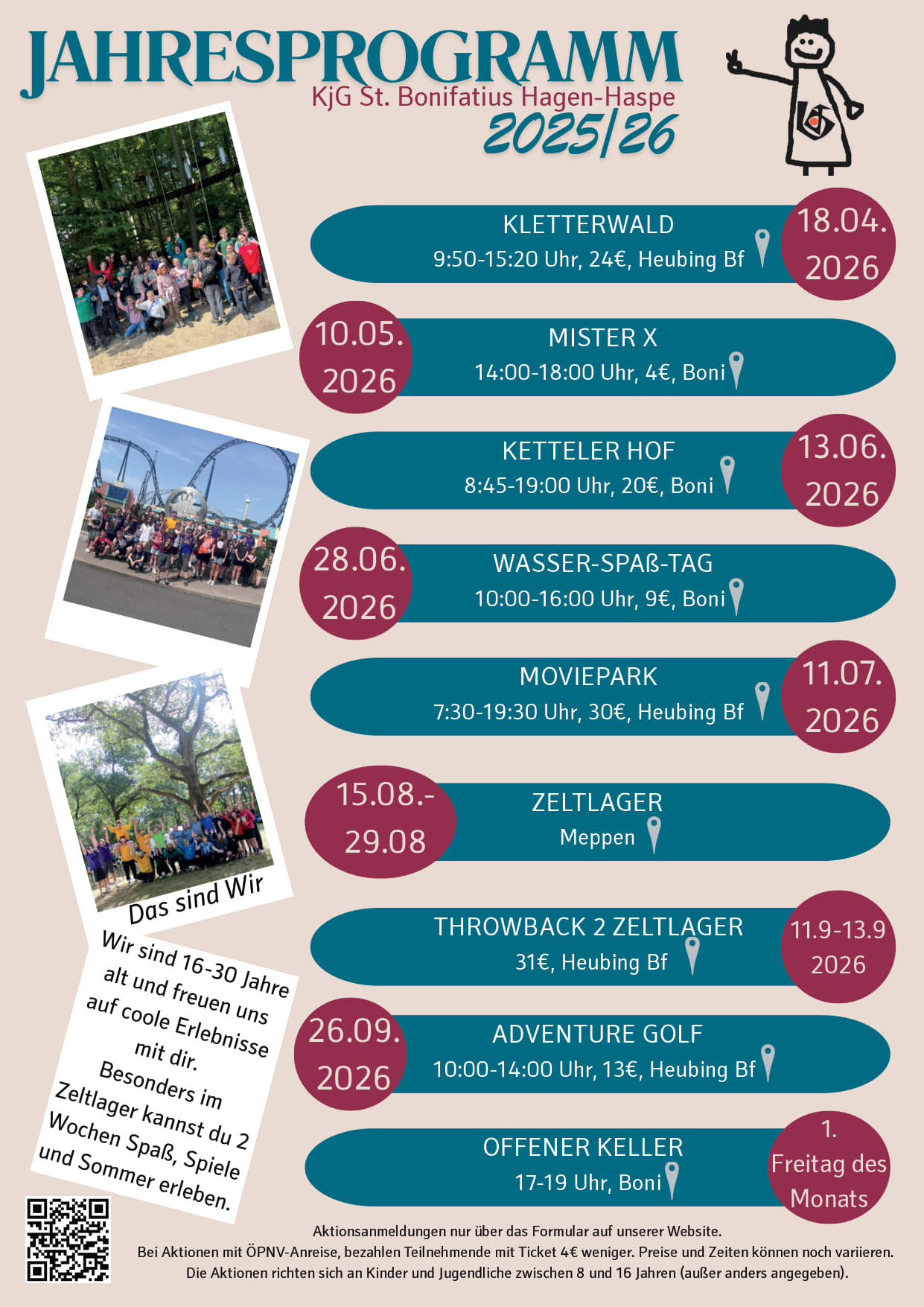 Für den Inhalt dieser Seite ist die KJG Haspe selbst verantwortlich. Anfragen bitte direkt an die KJG Haspe. Hier können Sie eine E-Mail an die Kath. Junge Gemeinde (KJG) schreiben: |